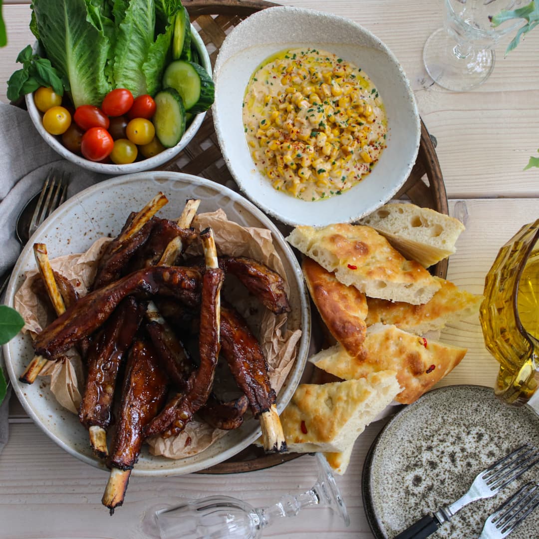 Klibbiga spareribs med honungsglaze och flatbread