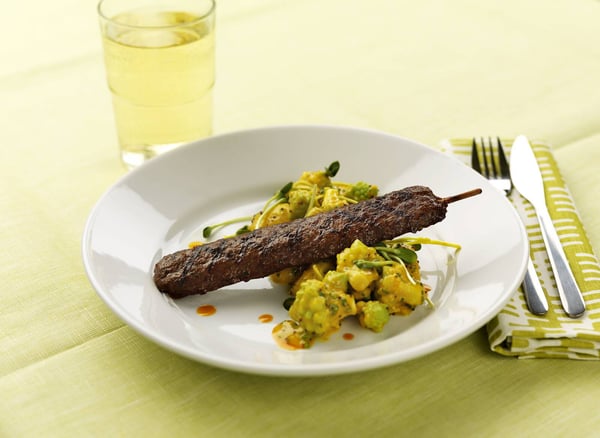 Grillade färsspett med gul potatis- och blomkålssallad