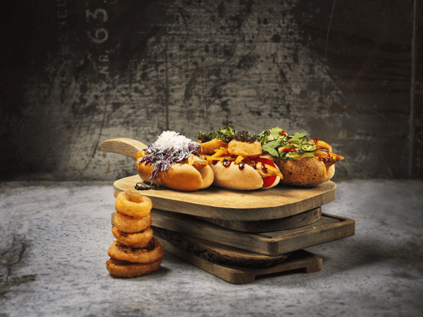 Vegokorv i bröd med sköna toppings