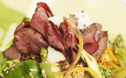 Skinkstek med matig bulgursallad och paprikakeso
