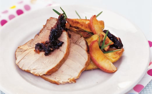Senaps- och plommonglacerad skinkstek med saltrostad potatis