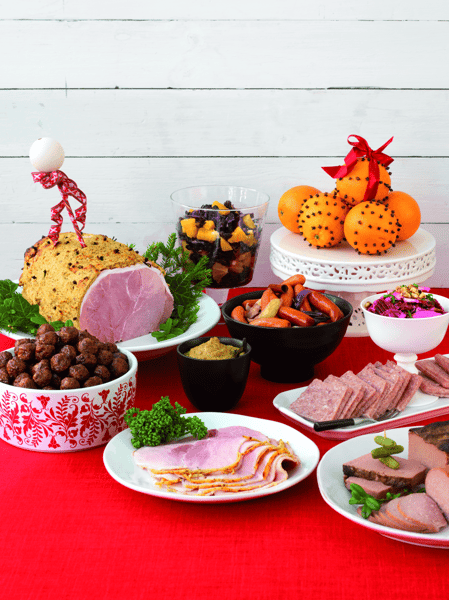 Julskinka med senapsgriljering och varm kaneldoftande rödkål