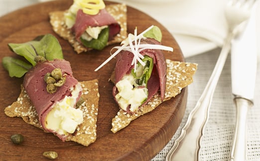 Tunnbrödsrulle med pastrami och getostpotatis