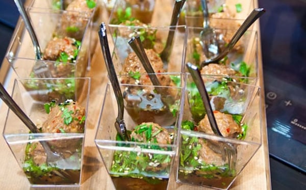 Dumplings med högrevsfärs med soya & sesam. Räkbuljong med ingefära, kål och citrongräs