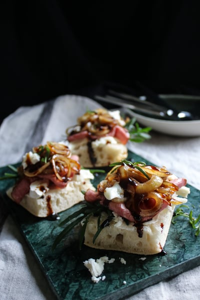 Fluffig focaccia med rostbiff och getost