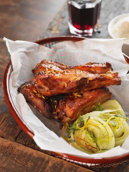 Grillade Piggribs och citronkokt fänkål med salvia och bacon
