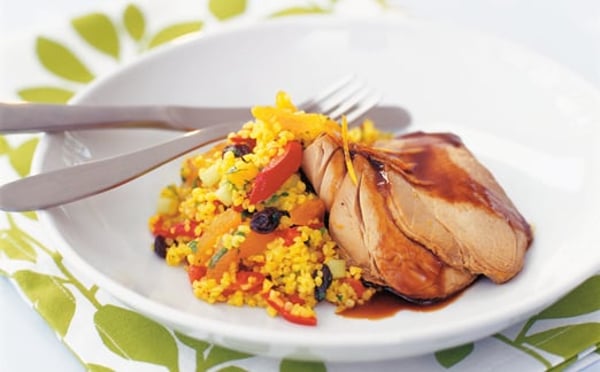Skinkstek med bulgursallad och citrussky