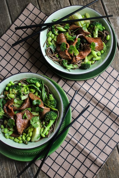 Denna nötstek sesamnudlar med asiatiska smaker är rik i protein och har välbalanserade smaker, mums!