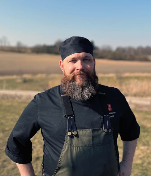 David Gustavsson är en välmeriterad kock som levt bland grytor och kastruller sedan barnsben. – Ja, jag har lagat mat så länge jag kan minnas. Den varma fotbolls- VM-sommaren 1994 var jag fjorton år och hade mitt första sommarjobb på Café Diana i Ystad. Jag kommer ursprungligen från Nyköping och är uppväxt och uppfostrad i en krögarfamilj där bland andra min farmor drev restaurang i Oxelösund. Jag gick Hotell- & Restauranglinjen på gymnasiet och har jobbat som kock i Danmark och USA, på Al Johnson’s Swedish Restaurant i Green Bay, Wisconsin, där det serverades svensk husmanskost rakt igenom. – Men mamma manade på mig att åka hem igen. Hon var orolig för att jag skulle hamna i fängelse om jag inte kom hem i tid för värnplikten. Jag ryckte in i lumpen och fortsatte ett par år inom det militära, jag varvade Försvarsmakten och utlandstjänster bland annat i Kosovo med säsongsjobb som kock i Grekland och Frankrike.