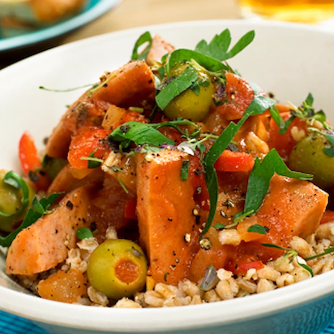 3. Vänd ner örterna och servera grytan med bulgur eller tagliatelle samt en klick crème fraiche.