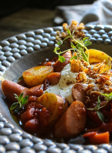 Ingredienser: Svenskt gris- och nötkött (33%)*, vatten, nöthjärta*, nötlunga*, potatismjöl, fett från gris*, bindväv från gris*, salt, blodprotein av nöt och gris, potatisfiber, modifierad majsstärkelse, socker, kryddextrakt, arom, koriander, antioxidationsmedel E300, konserveringsmedel E250, fårfjälster, rökarom. * Ursprung: Sverige.